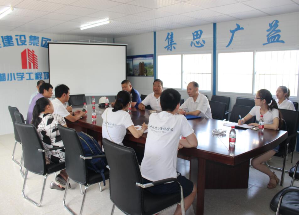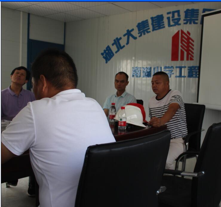 大集街工會主席劉浩首先對調(diào)研組走進大集街表示熱烈歡迎,也對省工會聯(lián)合學(xué)校團體組織的此類公益活動表示大力支持,同時也解釋了選擇南湖小學(xué)項目作為調(diào)研對象的原因,對湖北大集建設(shè)集團一路走來的不斷成長和完善發(fā)展表示肯定,對大集建設(shè)集團高標(biāo)準(zhǔn)的項目建設(shè)和規(guī)范化的用工制度表示嘉獎!