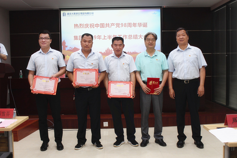 集團(tuán)黨委委員徐家富同志為“黨員先鋒崗先進(jìn)個(gè)人”梁前樹同志、萬(wàn)啟必同志、彭輝同志、許纓同志頒發(fā)榮譽(yù)證書,大集街工委副書記吳浩為“先進(jìn)黨支部”——房地產(chǎn)開發(fā)黨支部頒獎(jiǎng)。