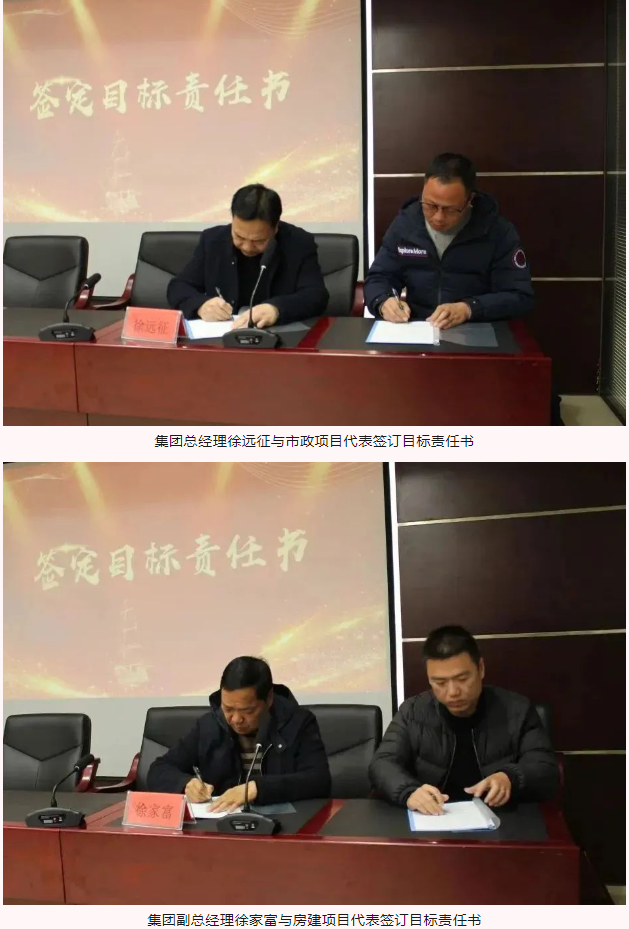 在2024年目標責任書簽訂儀式上,集團董事長、總經理、副總經理依次與部門負責人代表、項目代表簽訂目標責任書。責任書不僅僅是一紙文件,它承載著集團的期望與信任,代表著責任與擔當,猶如千鈞之重。