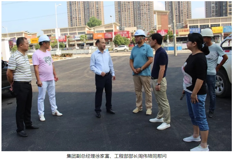 炎炎夏日送清涼,絲絲關(guān)懷暖人心。7月24日,蔡甸區(qū)大集街黨工委書記曹克斌、副書記吳永峰,工會(huì)副主席劉浩等領(lǐng)導(dǎo)蒞臨南湖(新光)小學(xué)項(xiàng)目開展送清涼慰問活動(dòng),為項(xiàng)目上奮戰(zhàn)在高溫一線的工作人員送來(lái)綠茶、礦泉水、十滴水、人丹等防暑降溫物資,集團(tuán)副總經(jīng)理徐家富、工程部部長(zhǎng)周偉陪同慰問并向各位領(lǐng)導(dǎo)詳細(xì)講解了項(xiàng)目建設(shè)情況。